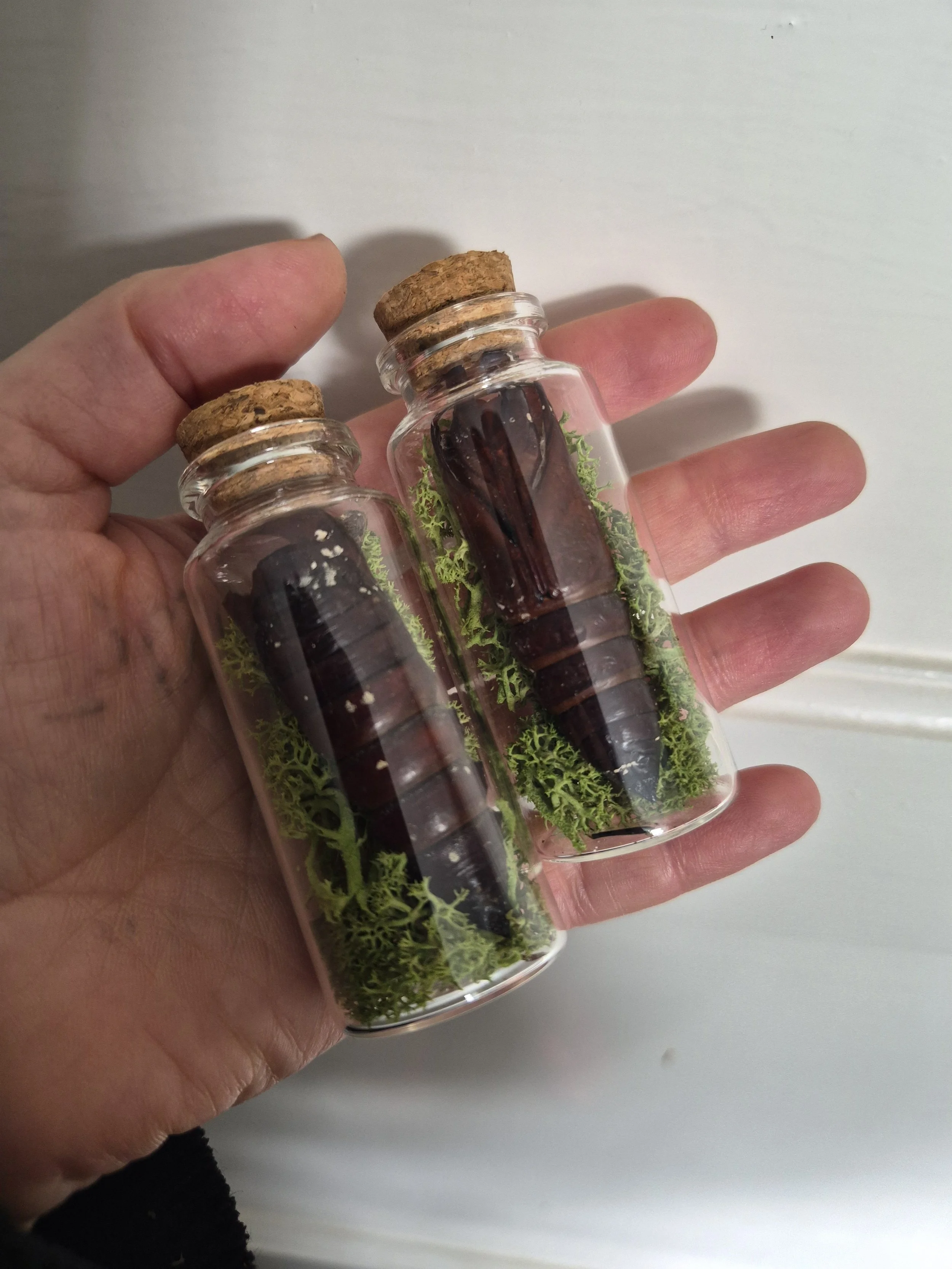 Empty Deathshead Hawk Moth Pupae in a Glass Vial – From my very own Deathshead Hawk Moths